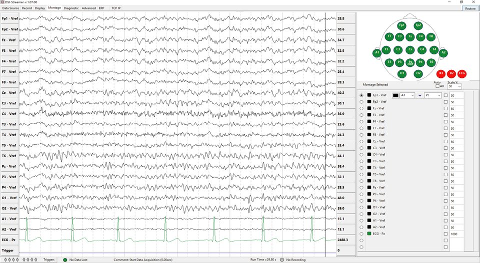 DSI-Streamer displaying live EEG and ECG signals#